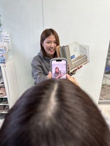 この間ホームページに使う写真のリニューアルのため、みんなに時間作ってもらって撮影会をしました♪事務所やショールーム前でパシャリ📸個人カットも撮りました!載せてある写真はまさにみさとの個人カットを撮っているところです。…悪意のある写真(笑)画角がひどいですよね!後ろから見ると髪ボサボサ💦白髪写ってなかっただけ良しとします(笑)