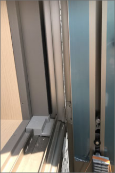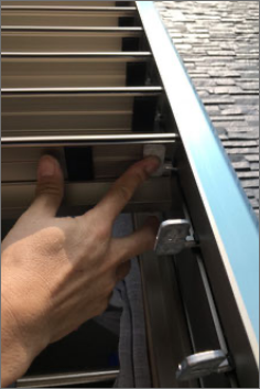 既存のサッシ枠にブリイユ枠を専用の部材で引っ掛けます。